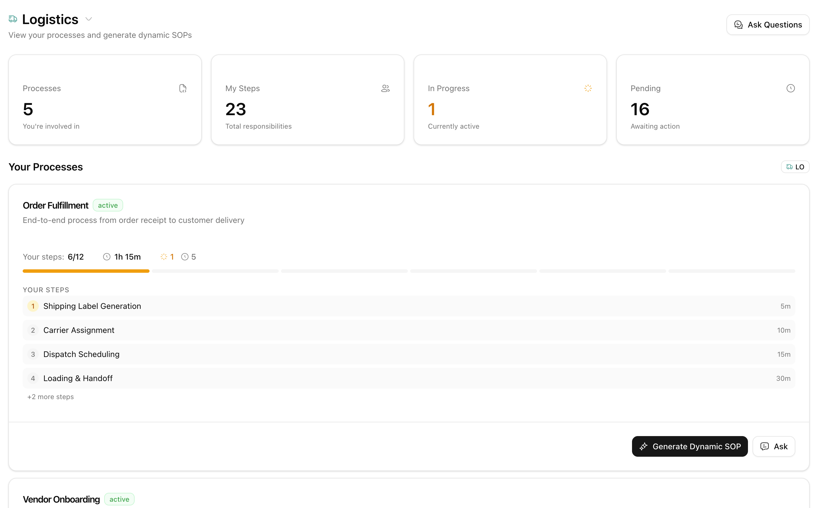Generate accurate SOPs for every role automatically. Each person gets the exact version of the process they need, nothing more.