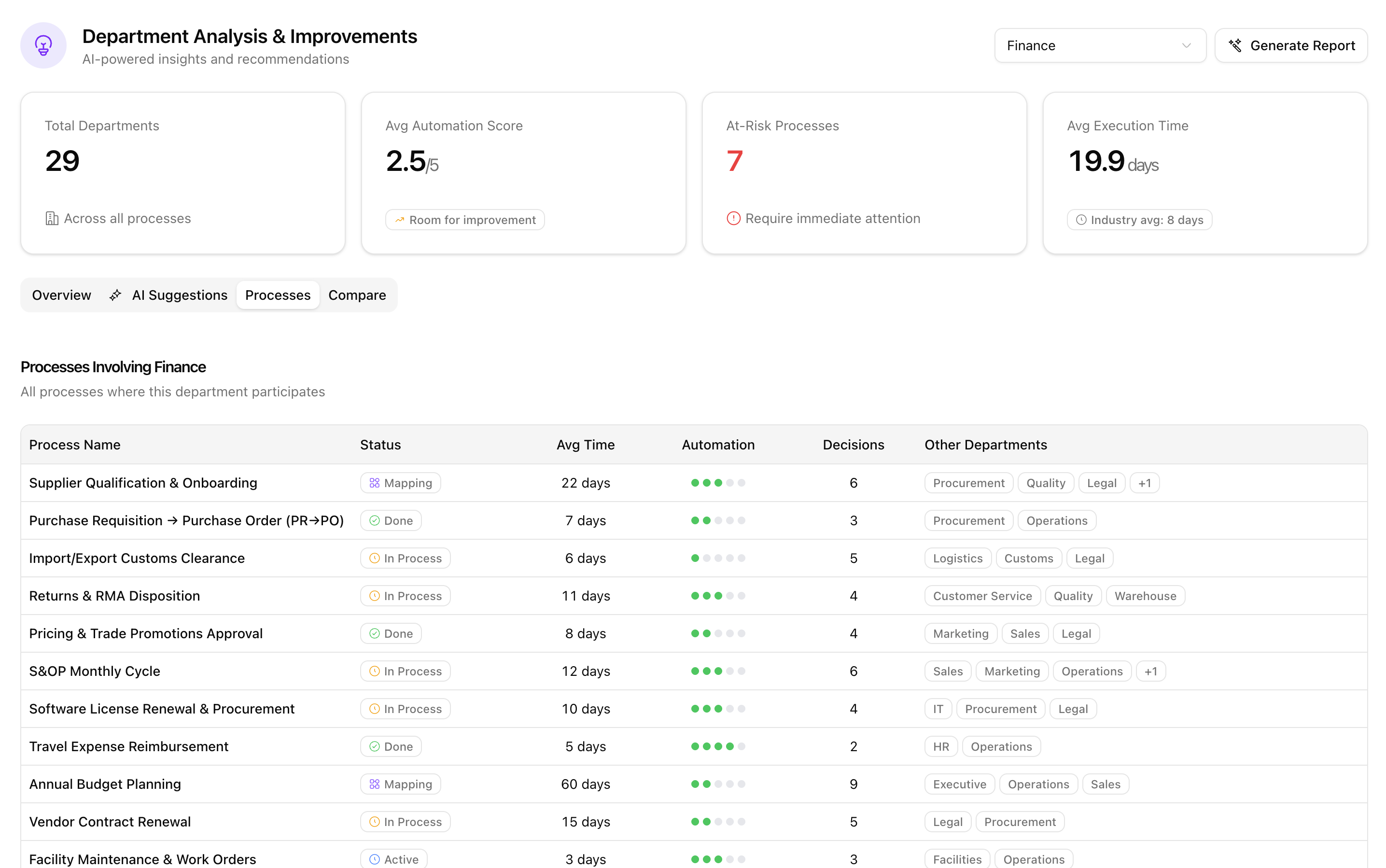 Get data-driven recommendations to simplify steps, remove friction, and spot opportunities for automation or redesign.